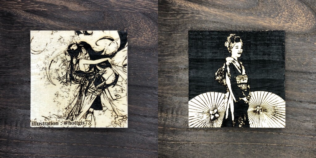 りりあのレーザー加工では、木にレーザー加工を施しオリジナルデザインでのグッズ作りをしています。